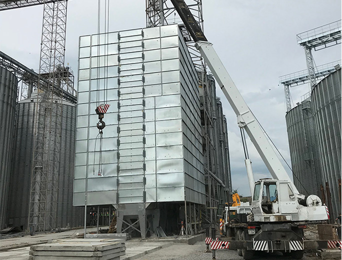 Грамотний підхід до замовлення підйомно-транспортних механізмів – також додаткова можливість для замовника зекономити. У всіх елеваторників та фермерів –вилкові/ковшові стрілові телескопічні навантажувачі, а також трактори з причепами, а це вже суттєва економія на підвозі обладнання. Крім того, навантажувач типу «Маніту» може встановити та зняти оснащення для силосу на плоскому днищі, вивезти обладнання, змонтувати 3-4 перших яруси сушарки і т.д.