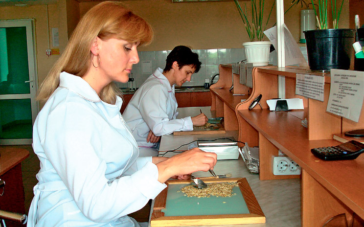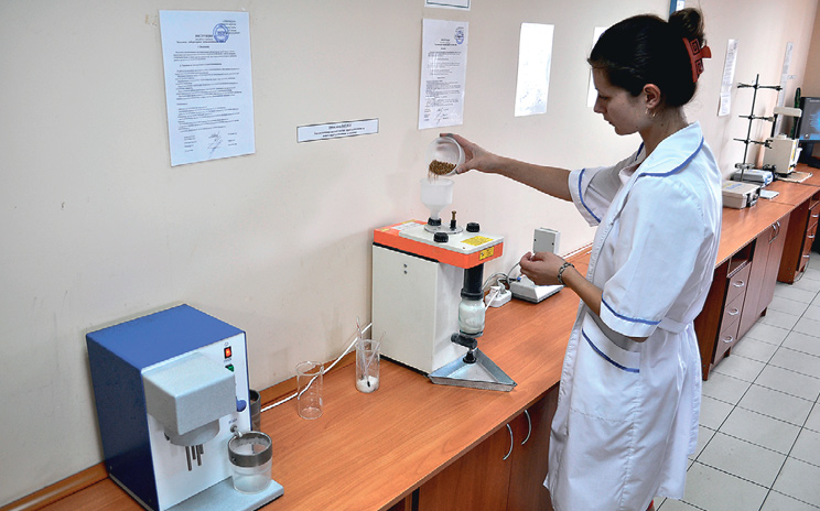 «Для работы с культурами, которые могут содержать ГМО, применяем экспресс-тесты, которые определяют наличие генных модификаций, и анализатор для количественного анализа ГМО в сое, рапсе и кукурузе. В среднем при нормальной влажности зерна на анализ культур, кроме пшеницы, понадобится около 15 минут. Если же зерно влажнее, чем требует стандарт, пробу анализируют в сушильном шкафу, — это длится чуть больше времени», — отметил руководитель ООО „Сервис Грейн“ Евгений Середа.